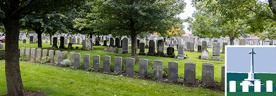 The Western Necropolis is a large cemetery complex north of Glasgow city centre. Adjoining this site are the large Lambhill and St Kentigerns cemeteries and Garnetill Hebrew Congregational Burial Ground. Our memorial recording the names of servicemen cremated at the Glasgow Crematorium is within the Western Necropolis. Taken together, we commemorate over 1,000 Commonwealth servicemen and women in this corner of Glasgow.