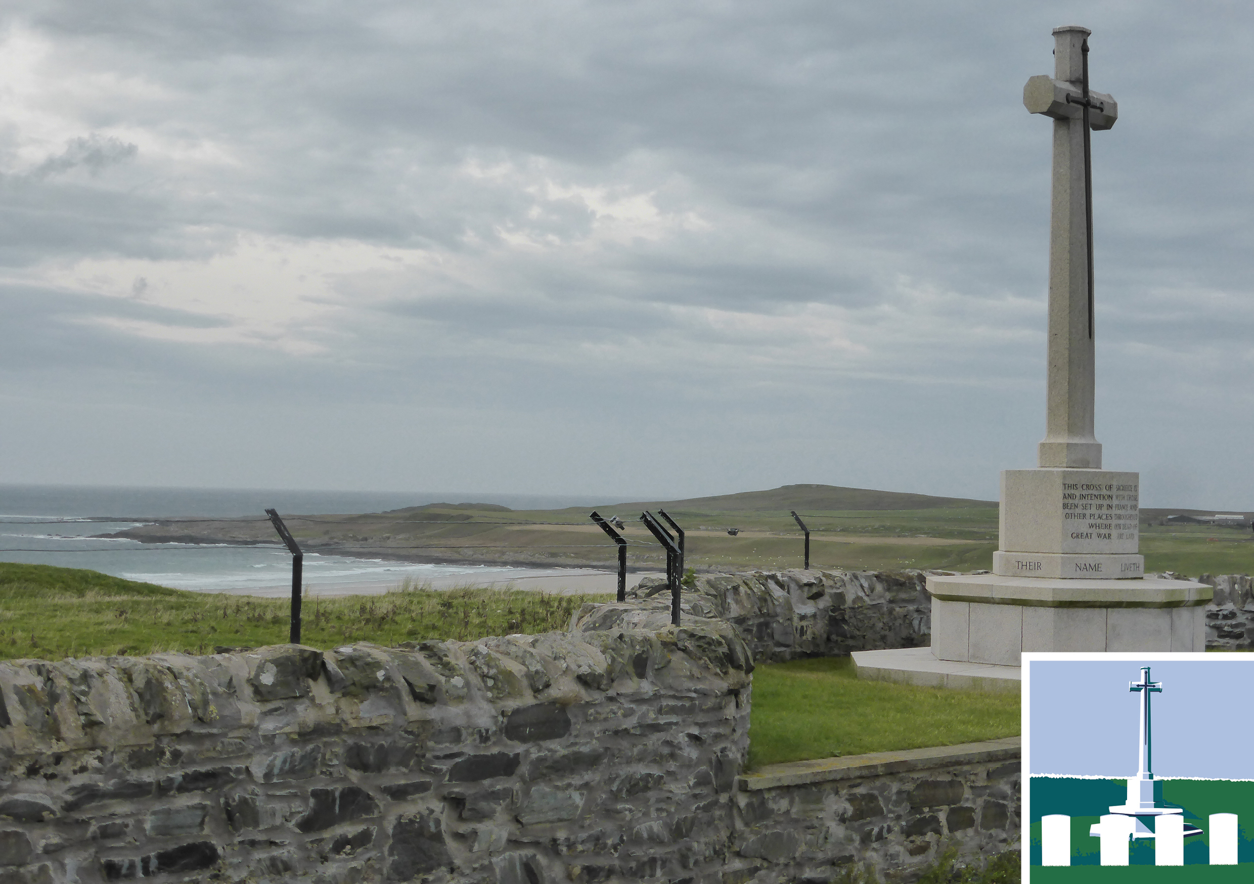 This isolated cemetery was begun following the sinking of the troop ship HMS Otranto off Islay in October 1918 and is the final resting place of 74 British servicemen, 71 being crewmen of the Otranto.