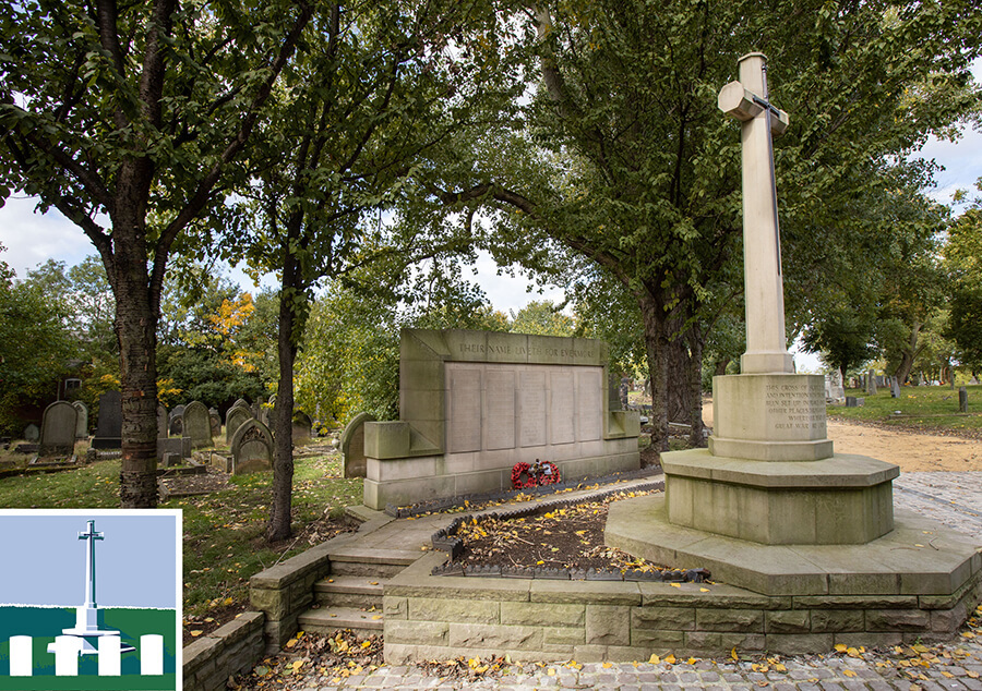 The majority of those commemorated at Warstone Lane and Key Hill were buried in “Public Graves”. The Commission was prohibited from erecting headstones over these public graves and so these individuals are commemorated by name on two screen walls, one in each cemetery. Those who were buried in private graves are marked by Commission headstones.