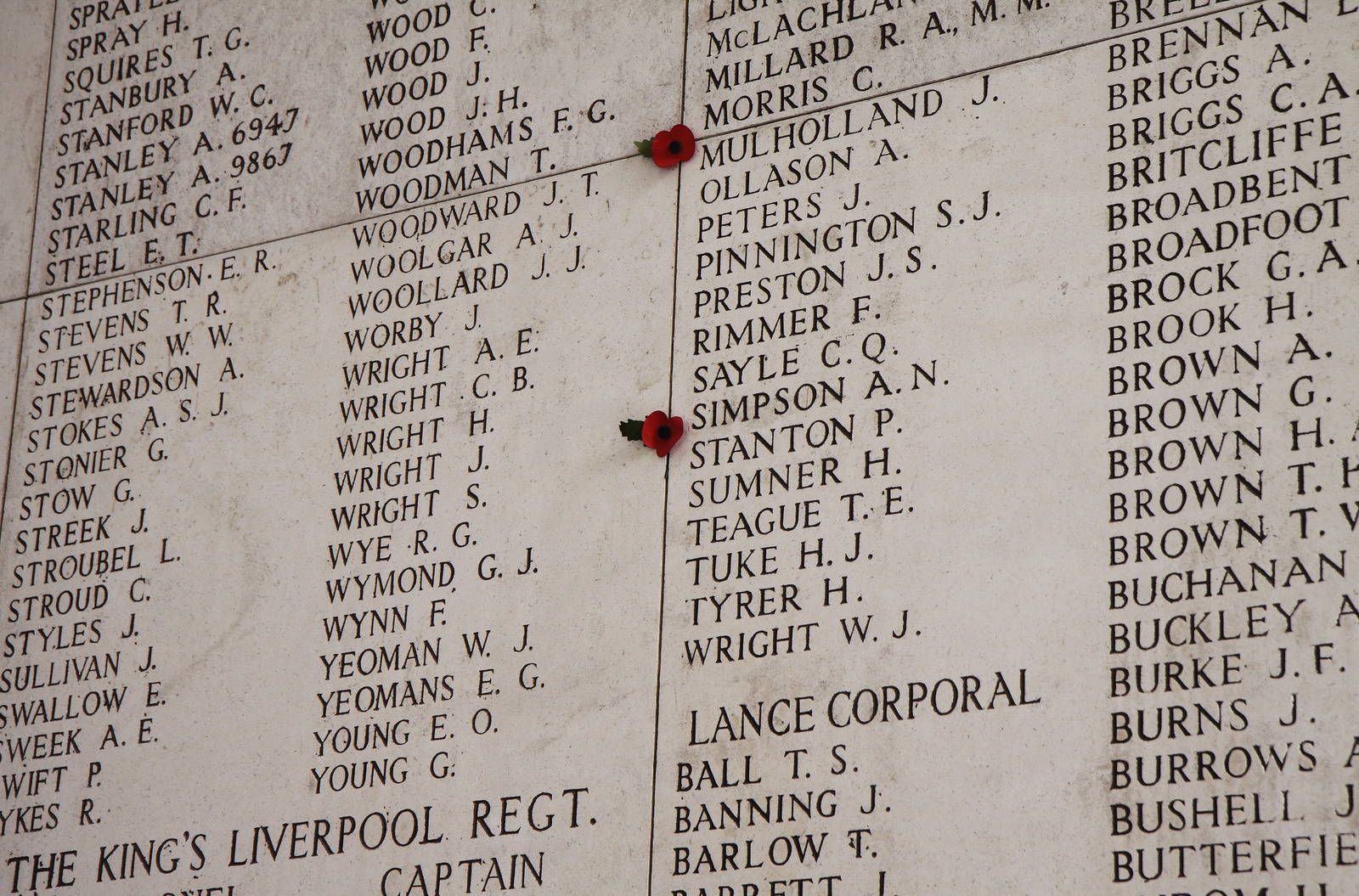 Some of the tens of thousands of names of the missing adorning the walls of the Menin Gate.