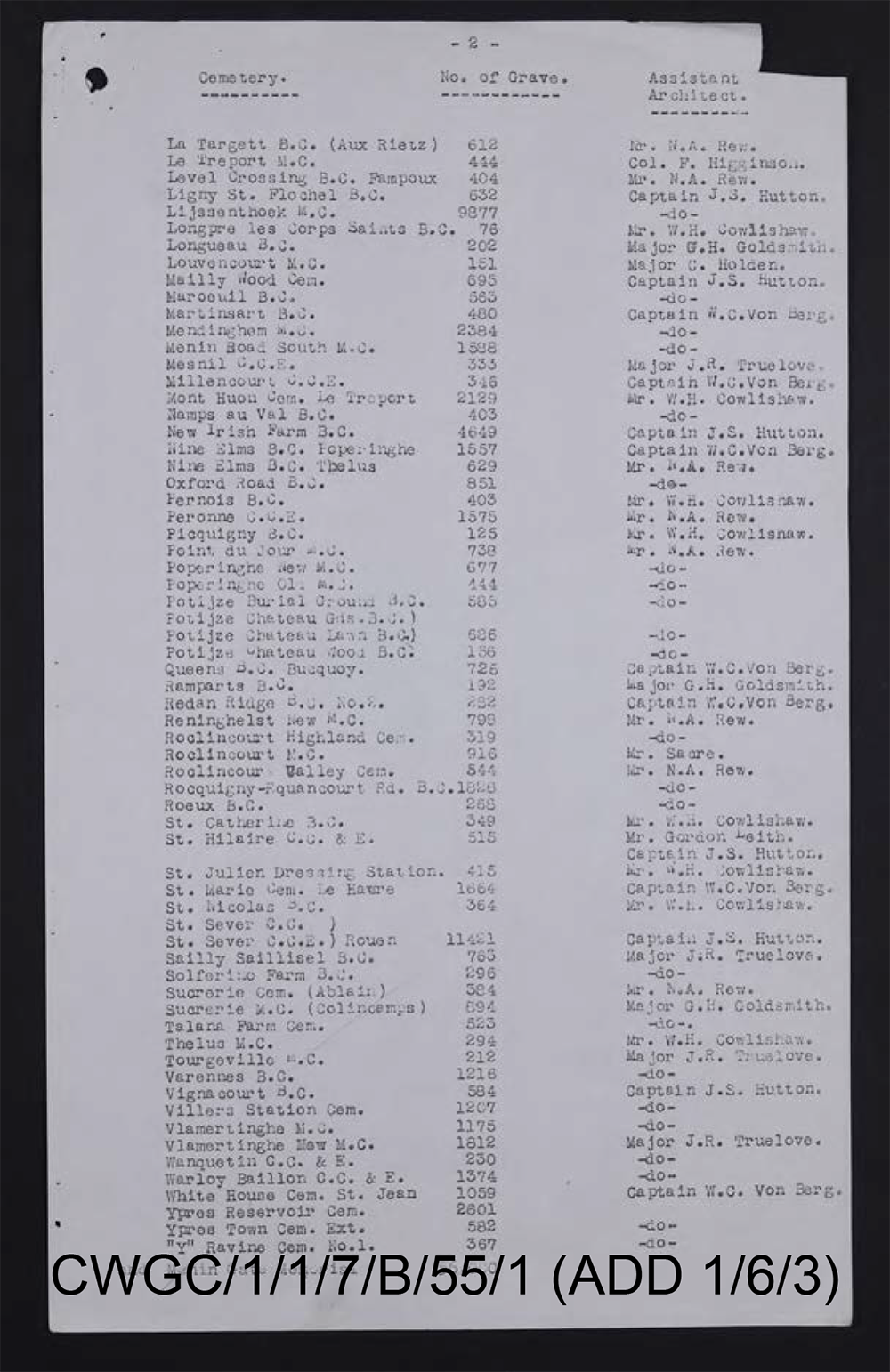 Whilst working for the Commission, Baker was Principal Architect for the design of 112 cemeteries, which we can see listed here: