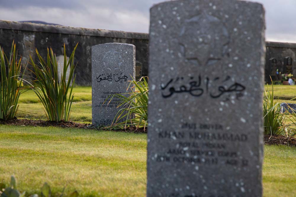 Most of the RIASC men buried here died of natural causes like infections and tuberculosis, but the first to be buried here - Naik (corporal) Mohammad Sadiq - was shot and killed by a comrade with a grudge against him in camp at Loch Alvie. Driver Khan Muhammad died of exposure during an exercise in the Cairngorms, and Driver Muhammad died of injuries sustained when a truck overturned.