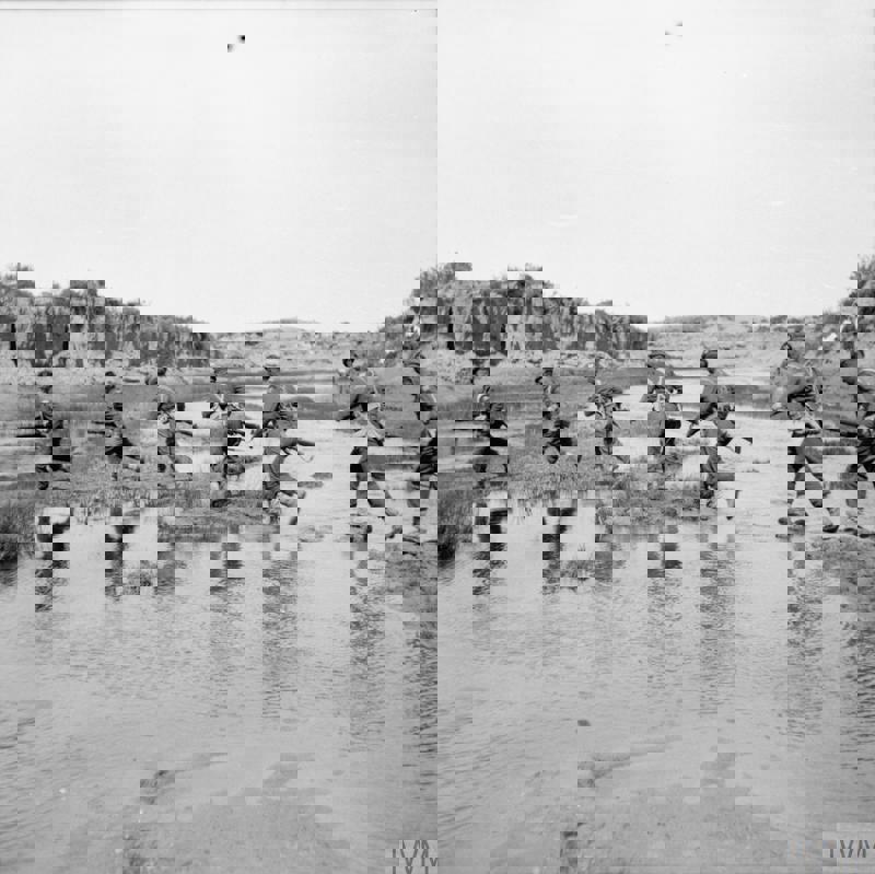 Gordon Highlanders advance in Tunisia (© IWM NA 1049)