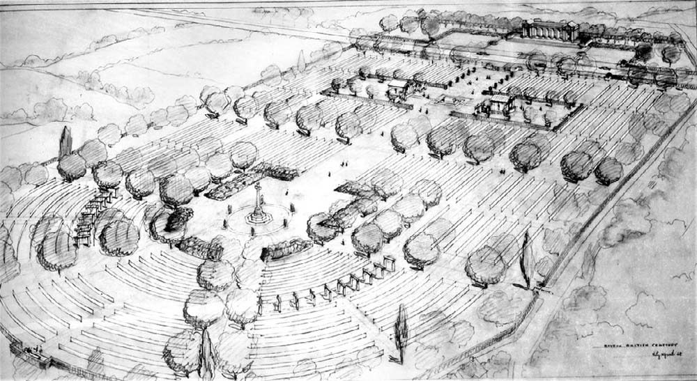 The Commission appointed Philip Hepworth as the principal architect for the cemeteries of north-west Europe, and Hepworth travelled across the former battlefields in late 1944, ensuring that burials continued in line with his plans for the cemeteries.