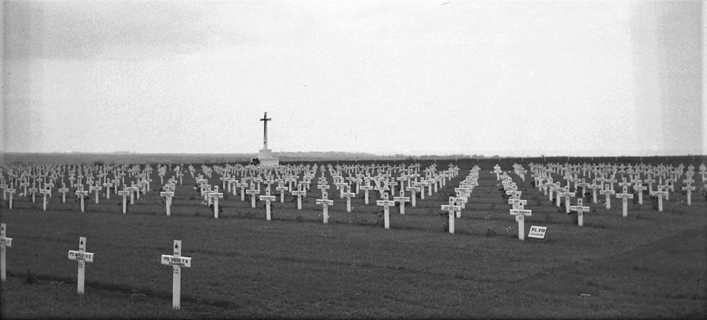 On 1 July 1944, No.32 GRU taped out the outline of a cemetery in a field on the outskirts of Bayeux, intended to be used by the nearby hospitals.
