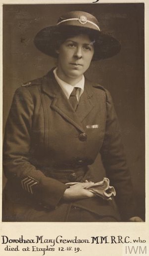 In the summer of 1918, she was on duty when German bombers raided the area. For her conduct during an air-raid, Dorothea was awarded the Military Medal, ‘for gallantry and devotion to duty during an enemy air raid. Although herself wounded, she remained at duty and assisted in dressing the wounds of patients.’ She would later be appointed as an Associate of the Royal Red Cross (ARRC).