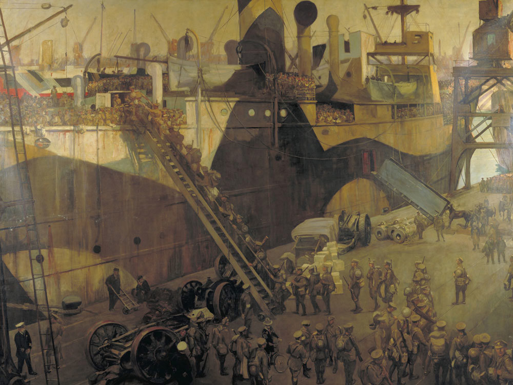 Troops embarking at Southampton, John Lavery. 1917 (Wikimedia Commons)