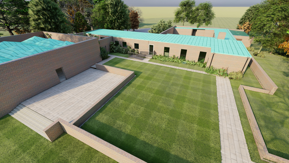 The plan is to renovate and extend the existing caretaker’s cottage and change its use into a new exhibition/learning centre involving an extension into the current courtyard area. This will provide a new flexible exhibition space connected to a seminar room and storage area with an inner garden to enable a wide range of educational activities related to the cemetery and memorial.
