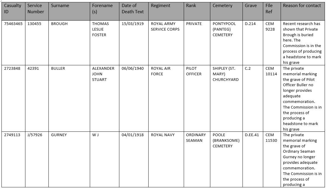 If you are related to one of the above casualties and can provide us with the documentation, please contact ourĀ Enquiries Team.