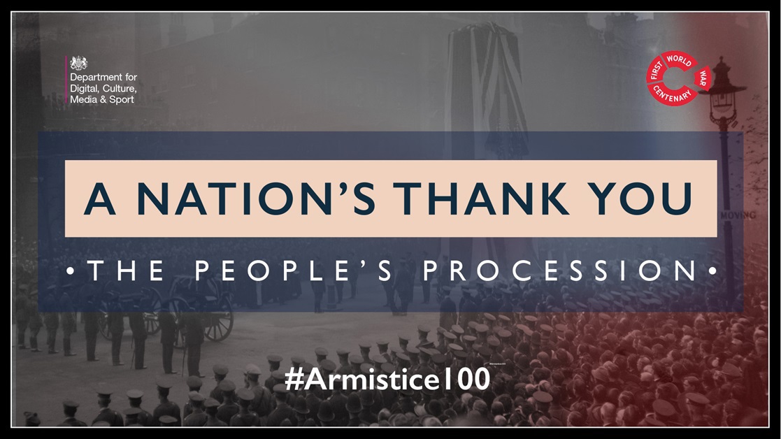 Descendants, family members and the public are invited to apply to take part in ‘A Nation’s Thank you - The People’s Procession’ on Sunday 11 November 2018. At the same time, people are being encouraged to ring bells around the world, as the government is seeking to replicate the spontaneous outpouring of relief that took place in 1918.
