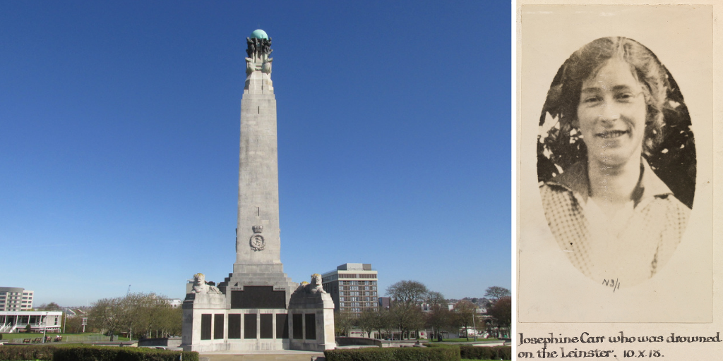 Over 500 of the 700 passengers and crew lost their lives in the sinking, among them was Josephine Carr. She was just 19 years old. Josephine’s body was never recovered. Her name is inscribed, alongside more than 45,000 other servicemen and women, on the CWGC Plymouth Naval Memorial.