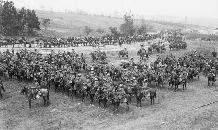 he 20th Deccan Horse, Indian Army, drawn up in ranks in the Carnoy Valley waiting for the opportunity to attack in July 1916, © IWM (Q 821)