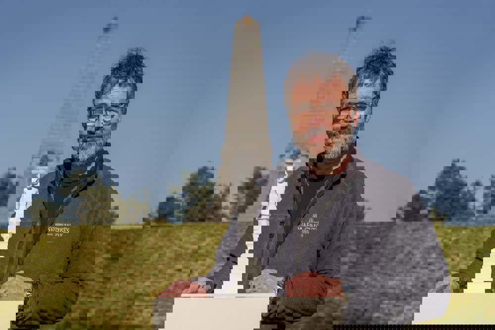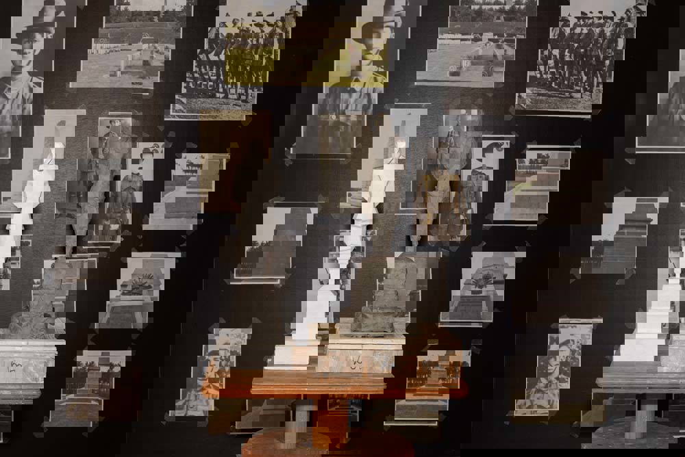 Sculpted from modelling clay, the trophy blends the silhouette of an Australian infantryman with the iconic obelisk monument of the Commission’s 5th Australian Division Memorial at CWGC Buttes New British Cemetery.