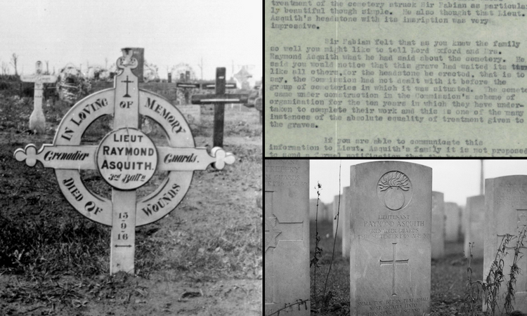 The letters reveals that Asquith’s “grave had waited its turn like all others for the headstone be erected, that is to say, the Commission had not dealt with it before the group of cemeteries in which it was situated”. It also includes a letter from his wife Katherine confirming her choice of personal inscription for his headstone from Shakespeare’s Henry V.
