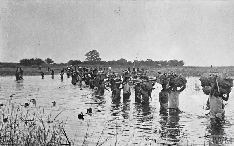 Carriers transporting stores across a river (© IWM Q 103654)