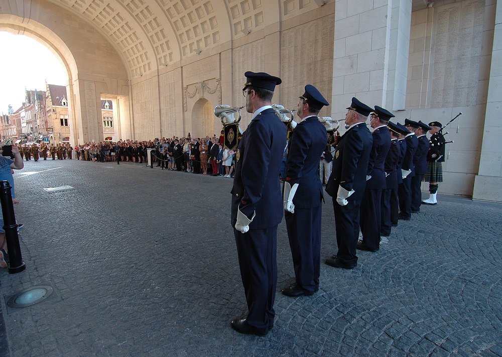 At the Menin Gate, Ieper, The Last Post is played every evening at 8pm, as part of a daily act of remembrance by the people of Ieper in memory of all of the Allied forces that fought and died in defence of the city.