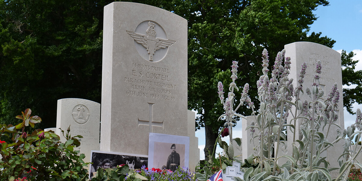 Both Private Corteil and Glen were killed on the morning of 6 June 1944, Corteil was aged just 19 years old. They were found lying close together and were later buried together at Ranville War Cemetery. The inscription on Cortiel’s headstone reads: HAD YOU KNOWN OUR BOY YOU WOULD HAVE LOVED HIM TOO. "GLEN" HIS PARATROOP DOG WAS KILLED WITH HIM